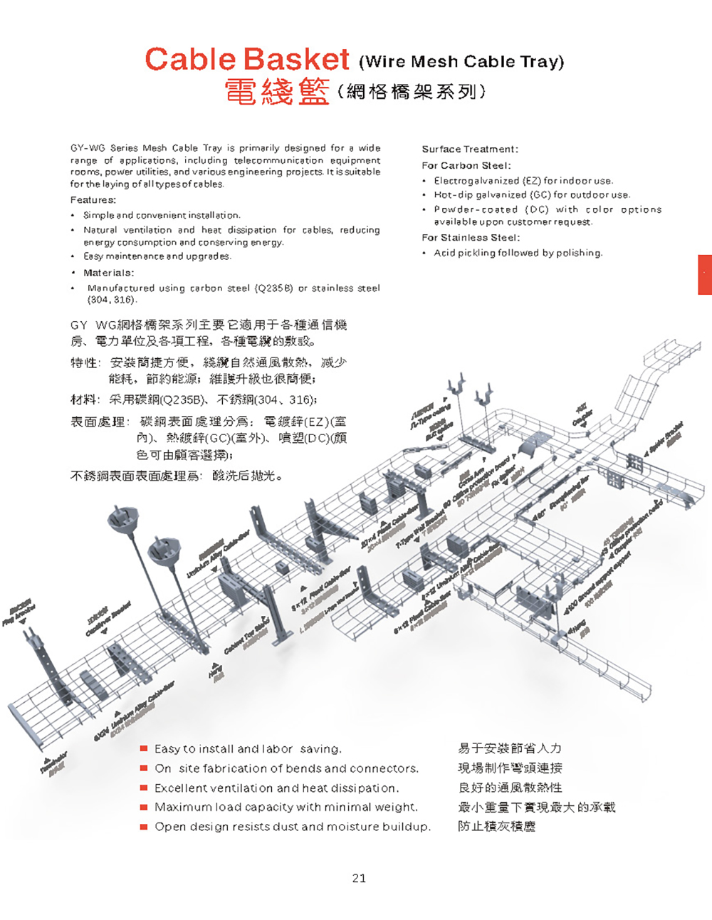 网格安装简捷方便,线缆自然通风散热,减少能耗,节约能源;维护升级也很简便。更多新型网格桥架请向我们的客服人员了解。