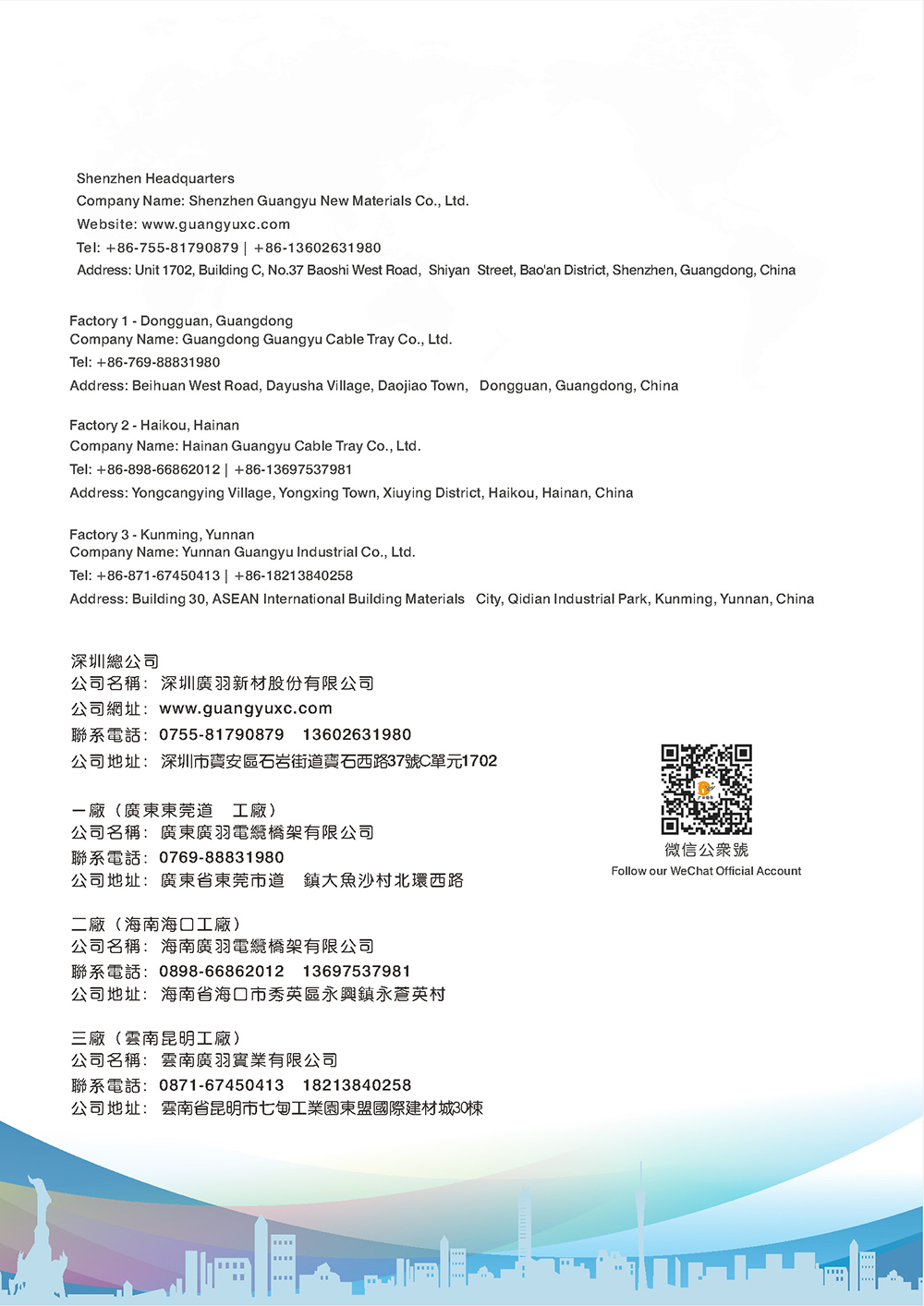 广羽桥架成功开发了阻燃塑料、铝合金、钢制光纤槽道三种材质的光纤槽道,为客户提供更实用的产品,更少的施工时间,更灵活的槽道。